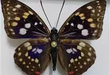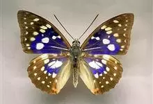 大紫蛱蝶为大型蝶种,翅展约86~110mm。翅紫黑色,有白色斑点点缀其中,雄蝶的翅具强烈紫色虹彩,其余部分暗褐色,后翅臀角具粉色斑。雌蝶体型较大,但是没有蓝紫金属光泽。原产于东亚的蝶类。…全部>>