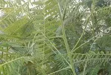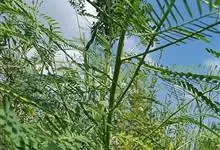 田菁 Pers.)是豆科田菁属的一年生草本。株高2~3.5米;茎绿色或褐红色,微被白粉;小叶线状长圆形,先端钝或平截,两侧不对称;花枝疏生白色绢毛,与叶轴及花序轴均无皮刺;荚果细长圆柱形;种子有光泽,…全部>>