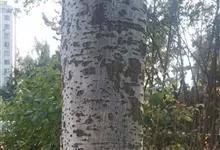 毛白杨是杨柳科、杨属植物。乔木,高达30米。树皮幼时暗灰色。侧枝开展,雄株斜上,老树枝下垂;小枝初被灰毡毛,后光滑。芽卵形,花芽卵圆形或近球形,微被毡毛。叶柄上部侧扁,长3-7厘米。…全部>>