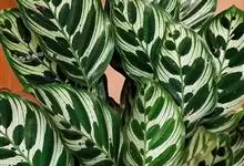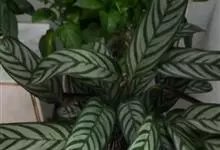 孔雀竹芋:竹芋科,肖竹芋属多年生常绿草本植物。植株挺拔株高可达60厘米。叶柄紫红色, 叶片薄革质,卵状椭圆形,叶面上有墨绿与白色或淡黄相间的羽状斑纹,就像孔雀尾羽毛上的图案,因而得名。…全部>>