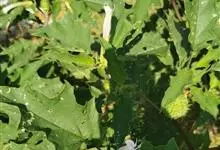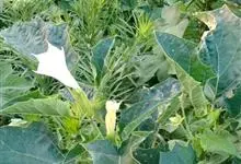 曼陀罗,茄科曼陀罗属一年生大型草本植物,全株光滑。有臭气;叶呈广卯形,边缘具不规则波状浅齿裂;花单生于枝杖间或叶腋,直立,有短梗;花萼是筒状裂片三角形,颜色为白色或淡紫色;果实为蒴果卵状,…全部>>