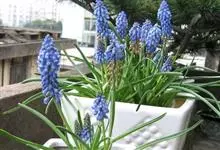 葡萄风信子,是天门冬科蓝壶花属的多年生草本优良观花地被植物,为小型花卉球根植物。根具鳞茎,卵形或近球形,株高5-10cm;基生叶半圆柱状线形;花葶不分枝,总状花序,长椭圆状柱形;花深蓝色,近球形,坛状,…全部>>