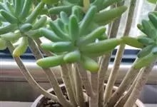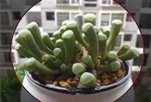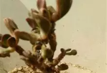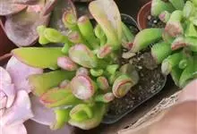 筒叶花月,是景天科青锁龙属的多年生草本植物。植株多分株,灌木状,茎较粗壮,圆柱形,表皮灰褐色;叶片肉质,互生,呈圆筒状,簇生于茎或分枝顶端,叶端呈斜截形,截面为椭圆形;花呈星状,淡白色;花期秋季。…全部>>