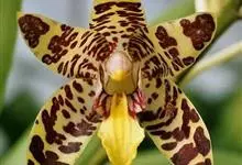 湿唇兰 Pfitz.):茎粗壮,长被宿存的叶鞘所包,上部具3-5枚叶。叶长圆形或倒卵状长圆形。花序1-6个,长达35厘米;疏生5-8朵花;花大,稍肉质,萼片和花瓣黄色带暗紫色斑点;萼片近相似,…全部>>