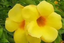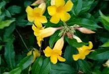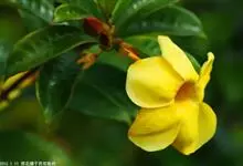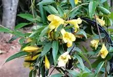大花软枝黄蝉是软枝黄蝉的一个变种,夹竹桃科黄蝉属植物。藤状灌木,长达4米,枝条软弯垂,具白色乳汁。叶纸质,椭圆形、卵圆形或倒卵形,花序着花4-5朵,花冠比原变种大形,橙黄色,花冠喉部具5个发亮的斑点…全部>>
