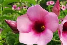 紫蝉花是夹竹桃科黄蝉属植物;其常绿蔓性灌木;叶片轮生,长椭圆形或倒卵状披针形;花腋生,漏斗形,呈暗桃红色或淡紫红色;花期为春夏季。紫蝉花原产于巴西,在中国云南、海南和广东栽培较多;喜高温,不耐寒,…全部>>