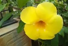 大花软枝黄蝉是软枝黄蝉的一个变种,夹竹桃科黄蝉属植物。藤状灌木,长达4米,枝条软弯垂,具白色乳汁。叶纸质,椭圆形、卵圆形或倒卵形,花序着花4-5朵,花冠比原变种大形,橙黄色,花冠喉部具5个发亮的斑点…全部>>