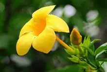 软枝黄蝉,夹竹桃科黄蝉属植物。藤状灌木;长达4米,具乳汁;叶对生或3—5轮生,倒卵形、窄倒卵形或长圆形。花序梗短,花长7—14厘米,花冠黄色,花冠筒长4—8厘米,下部圆筒形,上部钟状,…全部>>