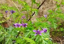 翠雀是毛茛科翠雀属的多年生草本植物。茎高可达65厘米;基生叶及茎下部叶具长柄,叶圆五角形,两面疏被短柔毛或近无毛;萼片紫蓝色,椭圆形或宽椭圆形;种子沿棱具翅;花期5-10月。…全部>>