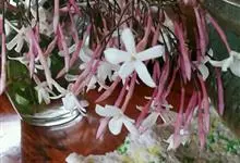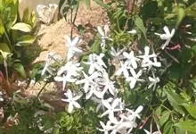 素馨花,木犀科素馨属多年生的攀援灌木植物。攀援灌木,小枝圆柱形,具棱或沟;叶对生,叶轴常具窄翼,小叶片卵形或长卵形;聚伞花序顶生或腋生,花序梗长,苞片线形,花萼无毛,裂片锥状线形,花冠白色,…全部>>
