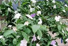 鸳鸯茉莉,茄科鸳鸯茉莉属常绿灌木植物,高1米。茎皮深褐色;分枝力强;单叶互生纸质;花簇生,聚伞花序,花冠五裂花瓣锯齿,含苞时蘑菇状深紫色,花香浓郁;花期4-10月。鸳鸯茉莉花朵芳香,…全部>>