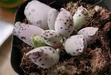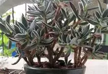 褐斑伽蓝是景天科伽蓝菜属的多年生多肉类植物,茎直立,多分枝,叶生于枝上,肉质叶片匙形,上面密被白色绒毛,下部全缘,叶缘上部有缺刻,缺刻处有深褐或棕色斑块。褐斑伽蓝原产非洲的马达加斯加岛。…全部>>