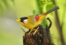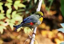 银耳相思鸟小型鸟类,体长14~18厘米。头顶黑色,耳羽银灰色,前额橙黄色;外侧飞羽橙黄色,基部朱红色,极为鲜艳、醒目。尾圆形,尾上、尾下覆羽朱红色,尾暗灰褐色,外侧尾羽橙黄色,其余上体橄榄绿或橄榄黄色。…全部>>