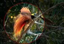 大极乐鸟是极乐鸟属中最大的鸟种。成年雄鸟体长可达到43厘米,雌性可达35厘米。雄鸟的额、颊、喉等墨绿色;头、颈黄色;上体暗赤栗色;腹部葡萄红色,胁部有长饰羽,其基部橙黄,中部黄色,…全部>>