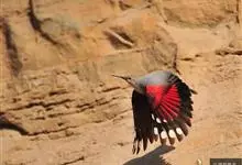 红翅旋壁雀:体重15-23克,体长120-178毫米。是一种体型略小的鸟类。尾短而嘴长,翼具醒目的绯红色斑纹。飞羽黑色,外侧尾羽羽端白色显著,初级飞羽两排白色点斑飞行时成带状。繁殖期雄鸟脸及喉黑色,…全部>>