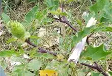 曼陀罗,茄科曼陀罗属一年生大型草本植物,全株光滑。有臭气;叶呈广卯形,边缘具不规则波状浅齿裂;花单生于枝杖间或叶腋,直立,有短梗;花萼是筒状裂片三角形,颜色为白色或淡紫色;果实为蒴果卵状,…全部>>