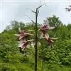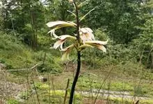 云南大百合Cardiocridum giganteum株高1~2米;地下部基生叶的叶柄基部膨大形成鳞茎,开花后凋萎;在老鳞茎基部每年可形成数个小鳞茎。花茎高大,直径达3~4厘米,中空,无毛。云南大百…全部>>
