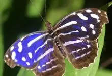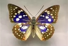 大紫蛱蝶为大型蝶种,翅展约86~110mm。翅紫黑色,有白色斑点点缀其中,雄蝶的翅具强烈紫色虹彩,其余部分暗褐色,后翅臀角具粉色斑。雌蝶体型较大,但是没有蓝紫金属光泽。原产于东亚的蝶类。…全部>>