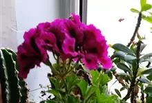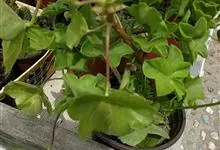 蔓性天竺葵学名盾叶天竺葵 Ait.)是牻牛儿苗科天竺葵属植物。多年生攀缘或缠绕草本,长40-100厘米,茎具棱角,多分枝,叶互生,略呈肉质,伞房花序腋生,有花数朵,花冠洋红色,上面2瓣着深色条纹,…全部>>