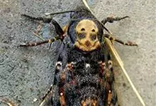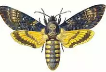 鬼脸天蛾,是鳞翅目天蛾科面形天蛾属动物。成虫翅展100~125毫米,体黑褐色;胸背有骷髅形斑纹;卵圆球形,直径约2毫米,淡黄绿色,表面光滑;老熟幼虫体长70~90毫米,蛹体长约56毫米;前翅为褐色,…全部>>
