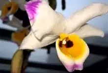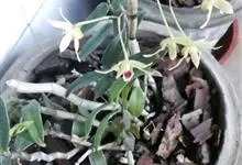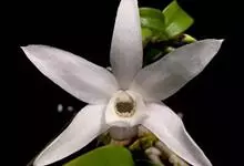 大苞鞘石斛:茎斜立或下垂,肉质状肥厚,圆柱形不分枝,具多节;节间多少肿胀呈棒状。叶薄革质,二列,狭长圆形。总状花序从落了叶的老茎中部以上部分发出,具1-3朵花;花大,开展,白色带紫色先端;花瓣宽长圆…全部>>