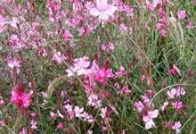 山桃草是柳叶菜科、山桃草属植物。多年生宿根草本。高60-100厘米,叶无柄,椭圆状披针形或倒披针形,花期晚春至初秋;多花型,花蕾白色略带粉红,初花白色,谢花时浅粉红。花紫红色,成密生的穗状花序,…全部>>