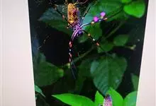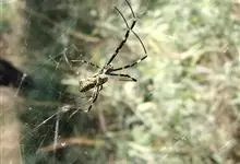 棒络新妇,是蜘蛛目肖蛸科络新妇属节肢动物。雄蛛体长约6毫米,背甲褐色,具黑色纵斑;步足黑色,有橙色环纹;腹部筒形、褐色,有黄斑;雌蛛体长约21毫米,背甲黑色,有大量银色长毛;触肢黄色,步足黑色,…全部>>