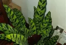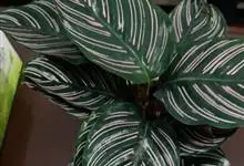 孔雀竹芋:竹芋科,肖竹芋属多年生常绿草本植物。植株挺拔株高可达60厘米。叶柄紫红色, 叶片薄革质,卵状椭圆形,叶面上有墨绿与白色或淡黄相间的羽状斑纹,就像孔雀尾羽毛上的图案,因而得名。…全部>>