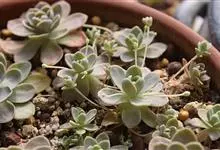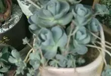 子持莲华 Hara)是景天科瓦松属多年生肉质草本植物。茎葡富,可萌生侧芽、易群生,叶片呈半圆形或长卵形,排列如莲座状、蓝绿色,表面略有白粉,…全部>>