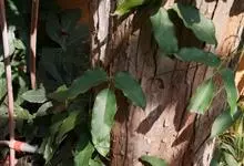 三叶地锦 Planch.)是葡萄科地锦属落叶攀缘藤本;树皮为棕褐色,老茎树皮条状纵裂;枝条黄褐色,粗壮,多分枝,节处略膨大;卷须与叶片对生,卷须短小而多分枝,分枝顶端着生有吸盘,…全部>>
