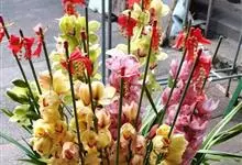 大花蕙兰,兰科兰属的常绿附生草本植物。大花蕙兰的假鳞茎椭圆形,粗大;根多为肉质圆柱状,粗壮肥大,大都呈灰白色;叶宽而长,下垂,浅绿色有光泽;花亭斜生,稍弯曲;花大,色泽艳丽,…全部>>