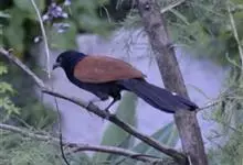 褐翅鸦鹃,是鹃形目鸦鹃科鸦鹃属的鸟类。褐翅鸦鹃的身体为黑色;头颈和胸带蓝紫色金属光泽并具黑亮的羽干纹,下胸至腹部泛金属绿光泽;两翼和肩部为棕栗色,外侧飞羽具暗色羽端,尾羽闪铜绿色光泽;虹膜赤红色,…全部>>