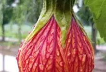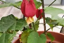 红萼苘麻是锦葵科、苘麻属常绿软木质灌木,叶绿色,长5-10厘米,心形,叶端尖,叶缘有钝锯齿,有时分裂,有细细的叶柄;叶互生,掌状叶脉;花单生于叶腋,具长梗,下垂;花萼红色,半套着大约4厘米长的花瓣,…全部>>