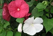 芙蓉葵是锦葵科木槿属植物,又名草芙蓉、大花秋葵,原产于北美。落叶灌木状。叶大、广卵形,叶柄、叶背密生灰色星状毛。花大,单生于叶腋,有白、粉、红、紫等色。喜阳、略耐阴,宜温暖湿润气候,忌干旱,耐水湿,…全部>>