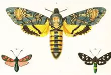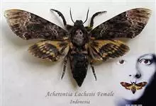鬼脸天蛾,是鳞翅目天蛾科面形天蛾属动物。成虫翅展100~125毫米,体黑褐色;胸背有骷髅形斑纹;卵圆球形,直径约2毫米,淡黄绿色,表面光滑;老熟幼虫体长70~90毫米,蛹体长约56毫米;前翅为褐色,…全部>>