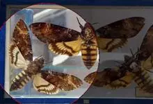 鬼脸天蛾,是鳞翅目天蛾科面形天蛾属动物。成虫翅展100~125毫米,体黑褐色;胸背有骷髅形斑纹;卵圆球形,直径约2毫米,淡黄绿色,表面光滑;老熟幼虫体长70~90毫米,蛹体长约56毫米;前翅为褐色,…全部>>