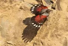 红翅旋壁雀:体重15-23克,体长120-178毫米。是一种体型略小的鸟类。尾短而嘴长,翼具醒目的绯红色斑纹。飞羽黑色,外侧尾羽羽端白色显著,初级飞羽两排白色点斑飞行时成带状。繁殖期雄鸟脸及喉黑色,…全部>>