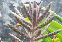棒叶落地生根是景天科、落地生根属植物。茎直立、粉褐色。叶圆棒形,上表面有沟、粉色,有红褐斑。叶片交互对生,交叉排列成十字形。叶端锯齿上长有很小的幼株、落地后即可生根成活。原产非洲马达加斯加。…全部>>