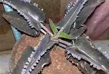 棒叶落地生根是景天科、落地生根属植物。茎直立、粉褐色。叶圆棒形,上表面有沟、粉色,有红褐斑。叶片交互对生,交叉排列成十字形。叶端锯齿上长有很小的幼株、落地后即可生根成活。原产非洲马达加斯加。…全部>>