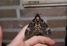 鬼脸天蛾,是鳞翅目天蛾科面形天蛾属动物。成虫翅展100~125毫米,体黑褐色;胸背有骷髅形斑纹;卵圆球形,直径约2毫米,淡黄绿色,表面光滑;老熟幼虫体长70~90毫米,蛹体长约56毫米;前翅为褐色,…全部>>