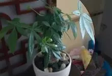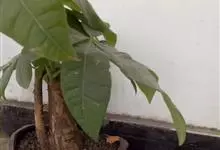 瓜栗 Walp. ),俗称发财树,木棉科小乔木,高4-5米,树冠较松散,幼枝栗褐色,无毛。小叶具短柄或近无柄。花单生枝顶叶腋;花梗粗壮,被黄色星状茸毛,脱落;萼杯状,近革质;花瓣淡黄绿色,狭披针形…全部>>