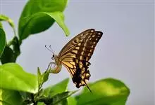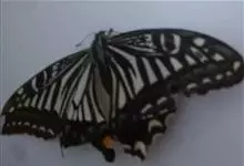 柑橘凤蝶是鳞翅目凤蝶科凤蝶属昆虫,又称柑橘黄凤蝶、花椒凤蝶、燕凤蝶。中型凤蝶。翅底色黑褐色,翅脉黑色,各翅室内具长短不一的黄白色斑;前翅中室具4条近乎平行的黄色线纹,后翅臀区具一枚橘红色的圆斑,…全部>>