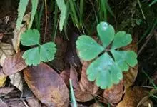 天葵 Makino)是毛茛科天葵属多年生小草本植物,块根长达2厘米,外皮棕黑色。茎高可达32厘米,基生叶为掌状三出复叶;叶片轮廓卵圆形至肾形,小叶扇状菱形或倒卵状菱形,两面均无毛;叶柄长可达12厘米,…全部>>