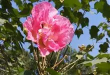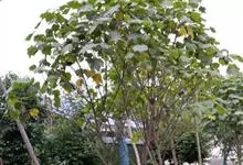 海滨木槿是锦葵科木槿属植物,落叶小乔木,株高3-5米,胸径20厘米,扁球形树冠,枝叶繁盛。厚纸质单叶互生,扁圆形、倒卵形或宽倒卵形,先端钝近平,具短突尖,基部圆形或浅心形,叶缘中上部具细圆齿,…全部>>