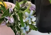 天蓝尖瓣藤 Decne.)又名琉璃唐锦,是夹竹桃科马利筋亚科尖瓣藤属的多年生植物,株高30-80厘米,全株密被白色茸毛。叶对生,披针长心形,基部心形。花顶生或腋生,花瓣5,淡蓝色。…全部>>