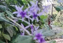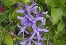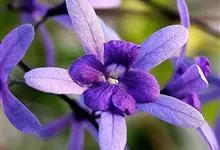 蓝花藤是马鞭草科、蓝花藤属木质藤本,长达5米,叶对生,革质,触之粗糙,椭圆状长圆形或卵状椭圆形,总状花序顶生,下垂,花蓝紫色,花期4-5月。 蓝花藤原产古巴,…全部>>