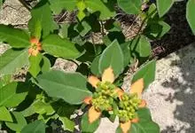 猩猩草:常绿或半常绿灌木,盆栽时株高0.5米-2米,在亚热带地区可长到6米以上。茎直立而光滑,单叶互生,卵状椭圆形至阔披针形,具不规则的深缺刻。长10-15厘米。花小,有蜜腺,排列成密集的伞房花序。…全部>>