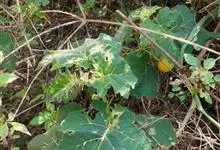刺天茄,是茄科茄属的多年生草本植物。茎直立,枝条有刺;叶片大,互生,卵形或椭圆形,有长柄,叶面有短柔毛;花单生于枝顶,外面密被星状绒毛及细直刺,果被星状毛及直刺,浆果球形,光亮,…全部>>