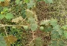 刺天茄,是茄科茄属的多年生草本植物。茎直立,枝条有刺;叶片大,互生,卵形或椭圆形,有长柄,叶面有短柔毛;花单生于枝顶,外面密被星状绒毛及细直刺,果被星状毛及直刺,浆果球形,光亮,…全部>>