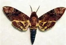 鬼脸天蛾,是鳞翅目天蛾科面形天蛾属动物。成虫翅展100~125毫米,体黑褐色;胸背有骷髅形斑纹;卵圆球形,直径约2毫米,淡黄绿色,表面光滑;老熟幼虫体长70~90毫米,蛹体长约56毫米;前翅为褐色,…全部>>